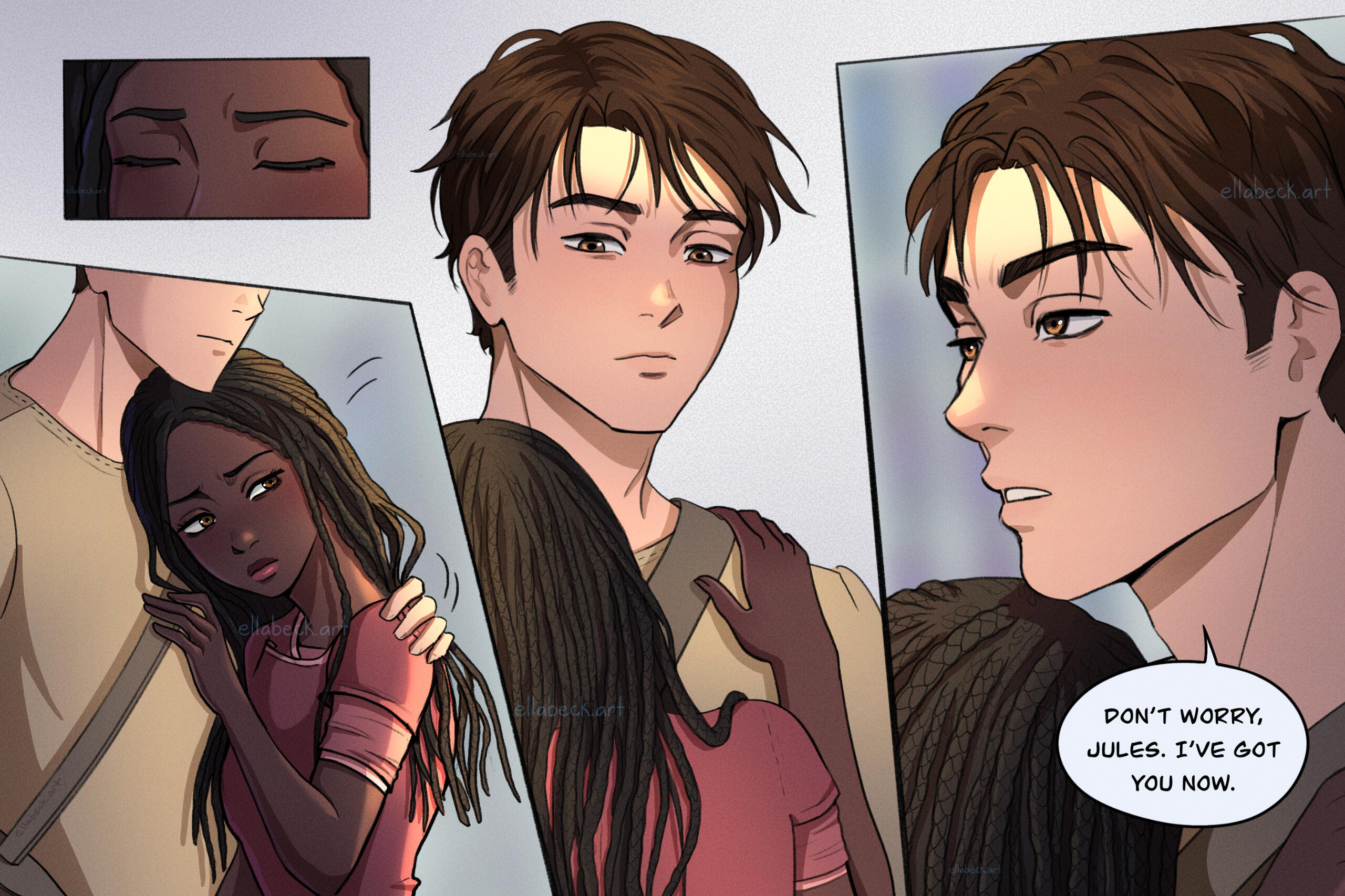 Finally, after some more back and forth conversation, I finished up the rendering! I added a purple shadow over her and an orange glow to finish the piece. I loved working on this project and had so much fun drawing someone else’s character!