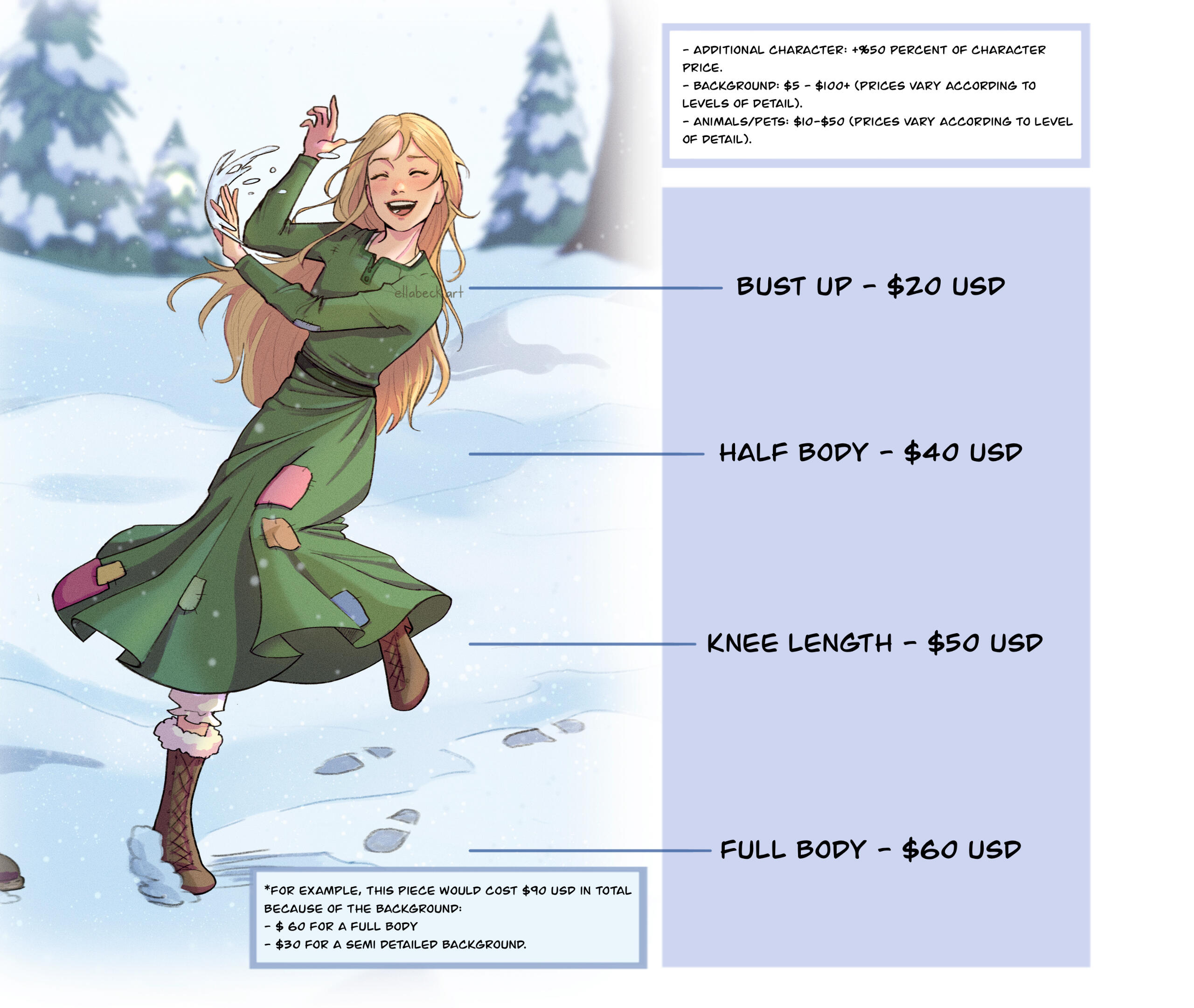 Here are the price sheets for both of my styles: Cartoon and Digital Painting (Semi Realism)Commission Request Form is linked below.